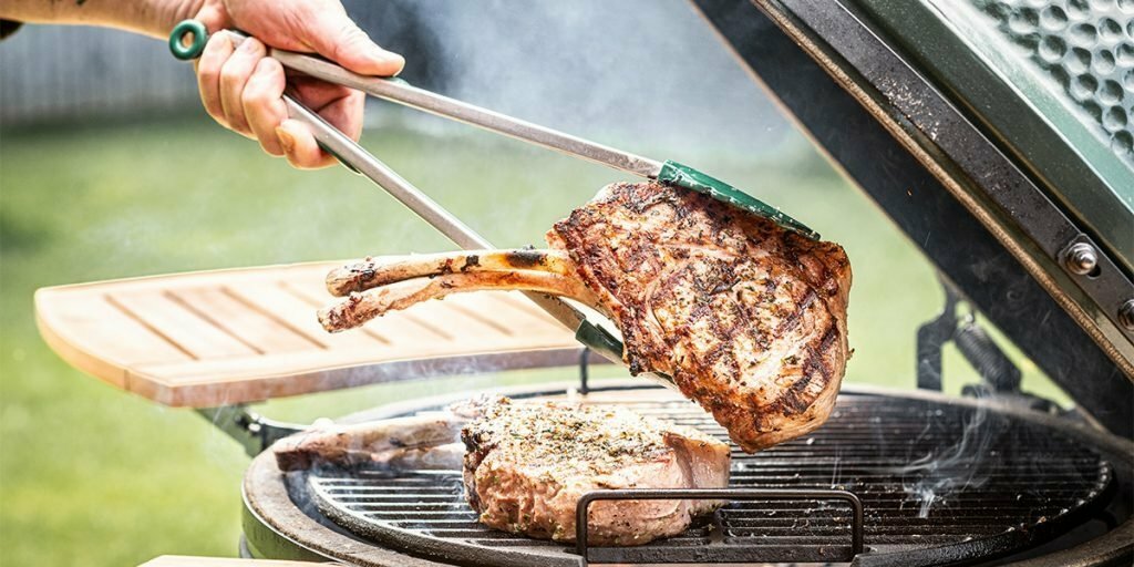 - Die Kerntemperatur der Tomahawks kontrollieren, diese muss 70 °C betragen. Diese kannst du mithilfe des Instant Read Thermometers messen. Wenn diese Kerntemperatur noch nicht erreicht ist, die Tomahawks weiter garen lassen. Falls notwendig, ab und zu wenden. Die gegrillten Paprika und Tomahawks aus dem EGG nehmen.