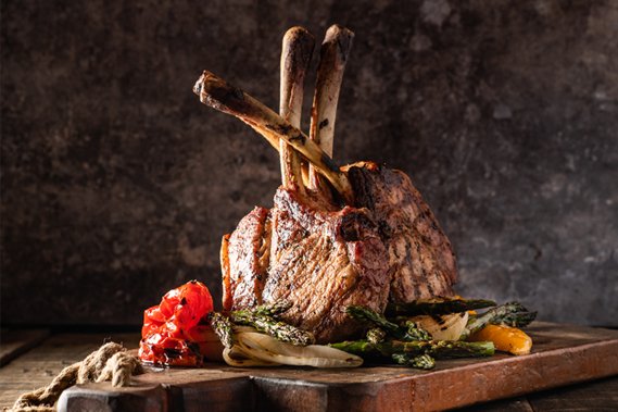Hast du schon mal ein Tomahawk-Steak vom Schwein probiert? Dieses Kotelett wird aus dem Rippenstück des Schweins geschnitten. Mit seinem langen Stielknochen ist das Fleischstück ein Blickfang. Für dieses Big-Green-Egg-Rezept haben wir doppelte Tomahawks verwendet. Weil du diese in deinem Keramikgrill etwas länger grillst als einfache Tomahawk-Steaks, entwickeln sie herrliche Röstaromen. Zu diesem coolen Steak servierst du natürlich gegrilltes Gemüse.