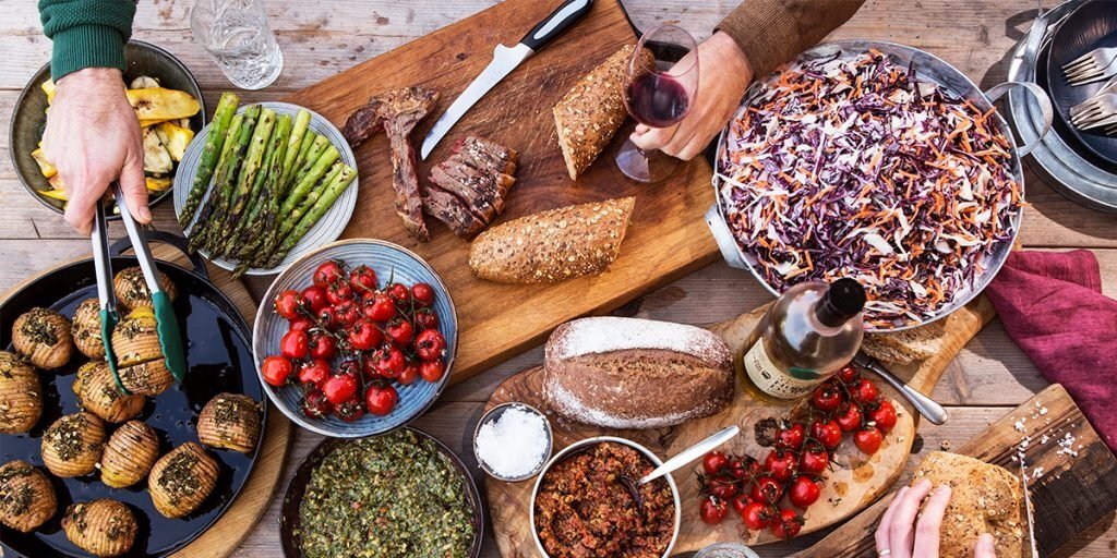 Auch wenn das T-Bone-Steak noch so gut schmeckt – eine schmackhafte Beilage findet immer großen Anklang. Bereite zum Beispiel eine große Schüssel Coleslaw (Krautsalat), etwas Tomatentapenade und Chimichurri zu. Auf Deinem EGG kannst Du Gemüse grillen, beispielsweise grünen Spargel und Zucchinischeiben. Dazu röstest Du Kirschtomaten und garst einige leckere Hasselback-Kartoffeln, die Du vor der Zubereitung mit Knoblauch-Rosmarinöl bestreichst.
